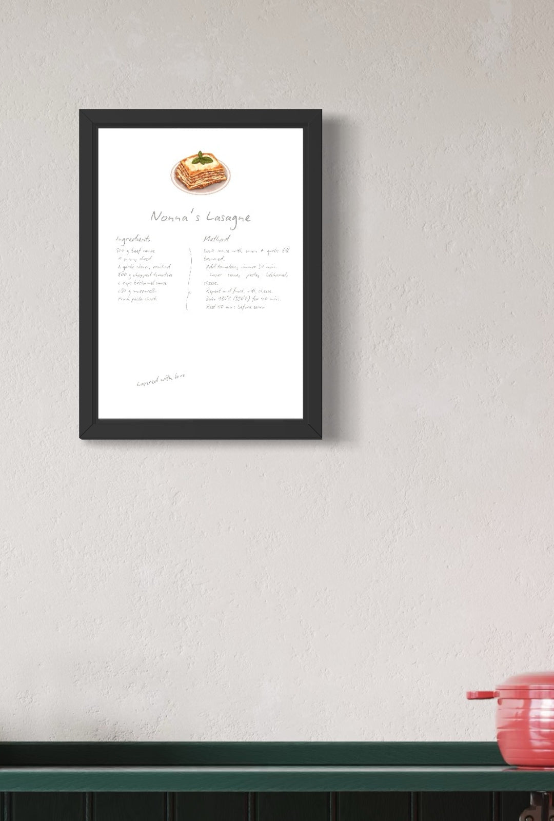 Handwritten recipes fade, get lost, or sit forgotten. We bring them back to life as custom illustrated prints — preserving the memory and celebrating it for years to come.